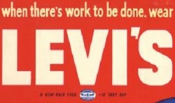 Have a look at how they have been styling their. . Over the course of a few decades the company went from levi's written in all black, to levi's written in white on a red background (the e slightly slanted).